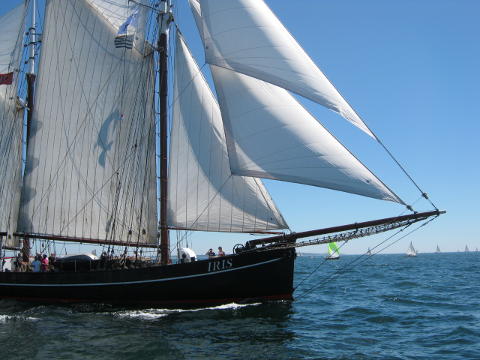 The Brixham trawlers are alongside the Baltic galeases in the Freycinet basin and the herring ketches from the Netherlands are visiting the Berigny basin. Over the roofs of the hangars, one can see the powerful masts of the tall ships that occupy the entire Joseph Duhamel quay in the inner harbour and, further east, the Verdun quay. In the access channel to the port, dories, faerings, oselvars and other Ness yawls parade in line. In the marina one can see the gleaming hulls of a dozen "vintage" motorboats and small gaff rigged yachts.... "